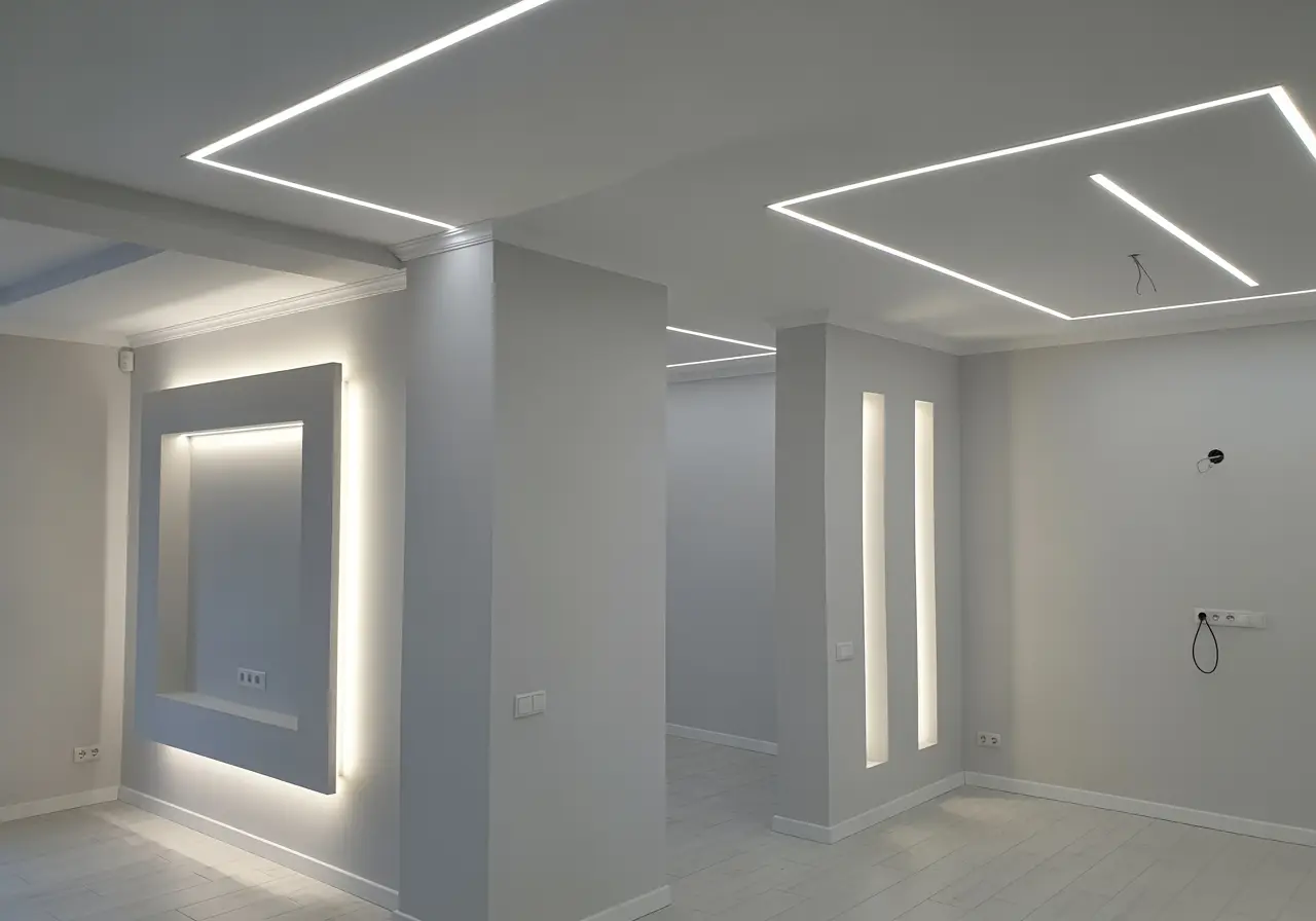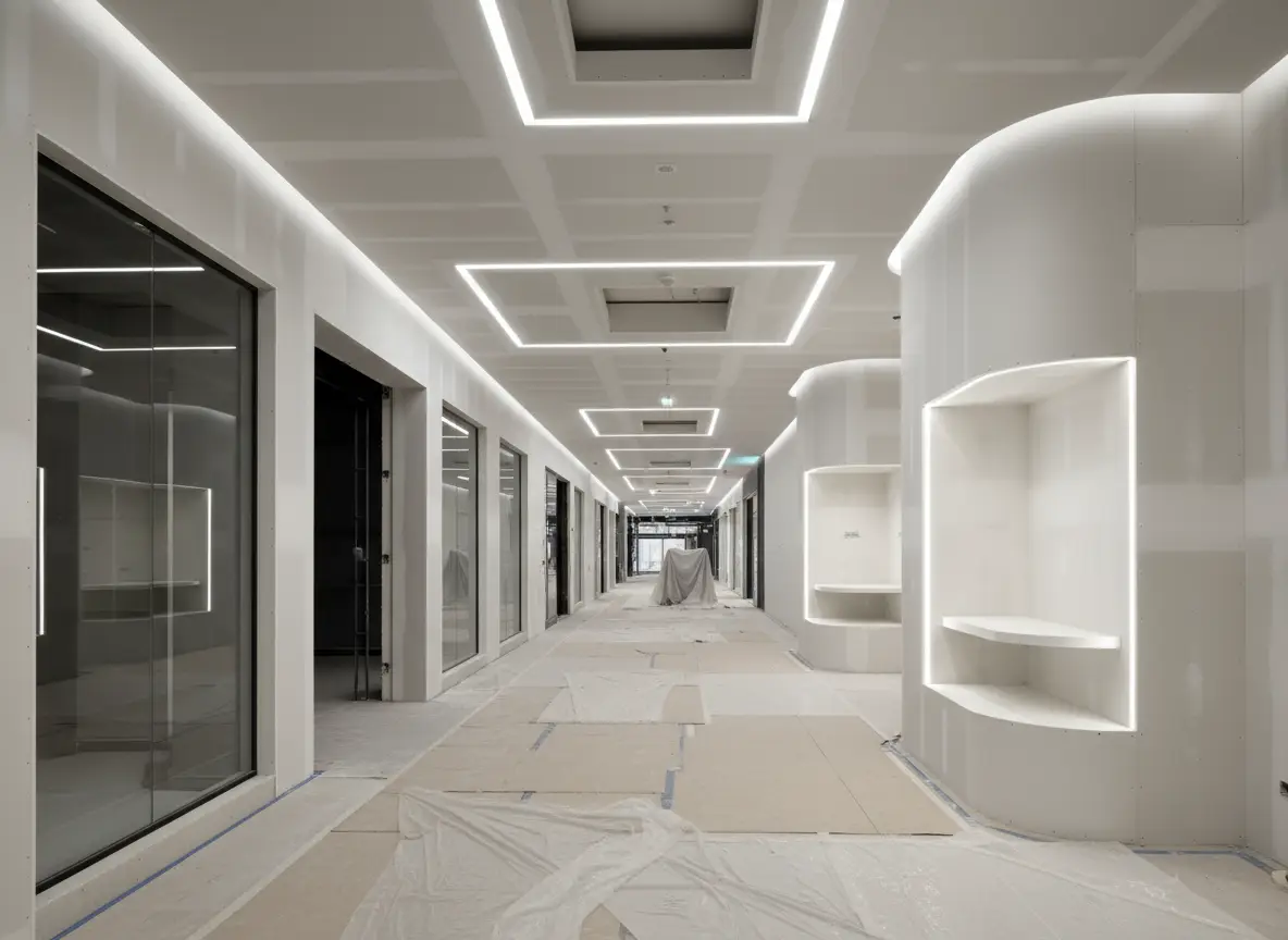 • Insegne e gole luminose integrate nelle strutture in cartongesso.